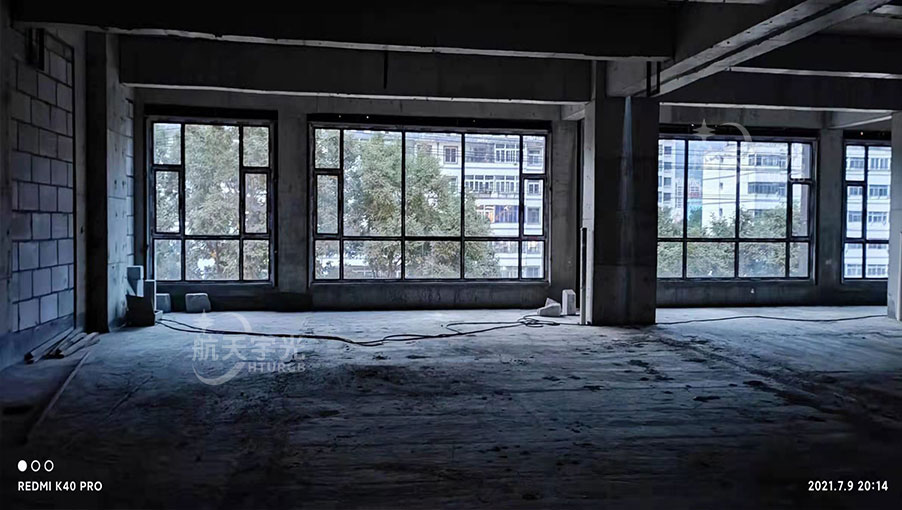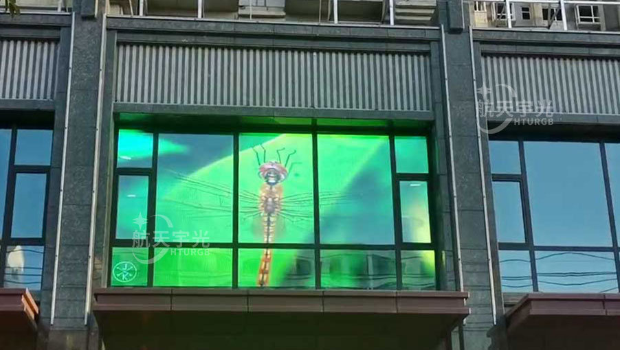 The transparent display screen is located inside the glass window on the second floor, facing outward. The screen body adopts positive Front-Transparent Led Screen with high brightness. One is 5 * 2.5m high and the other is 3.5 * 2.5m high. The display size is determined according to the window position.