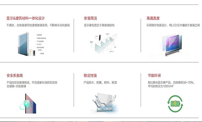 Transparent glass screen series is a kind of innovative transparent LED display screen which has the characteristics of transparent display novel structure high-definition highlight simple application intelligent control energy conservation and environmental protection novel materials and imaging etc. Also known as LED photoelectric glass the perfect combination of LED electronic components and optical glass makes the transparent display more fashionable and scientific. It has become a new favorite of LED display schemes that can replace indoor glass curtain walls. It is mainly used in high-end business display art exhibition government organs indoor glass curtain wall partition elevator and escalator display scheme;