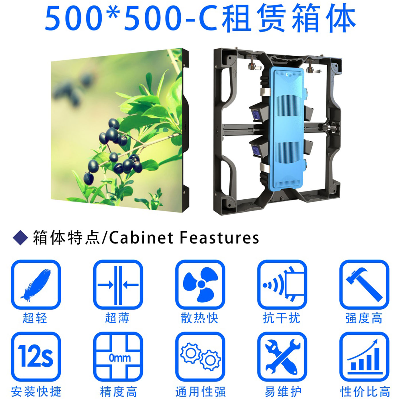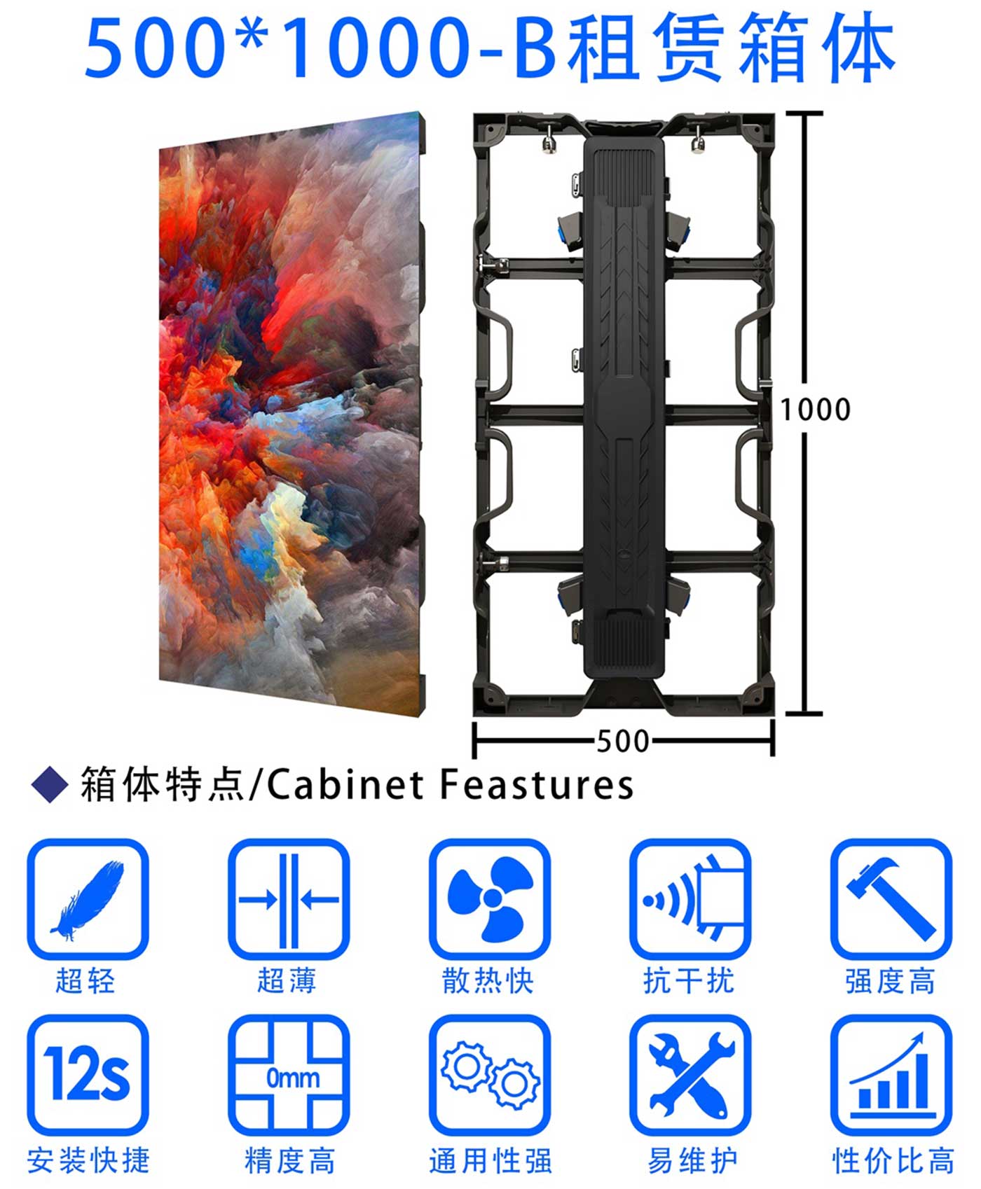 Indoor rental LED display screen has the characteristics of ultra wide viewing angle ultra-high brightness high contrast and low attenuation. It supports the front and rear maintenance structure and the box splicing is more convenient and fast. It is widely used in stage leasing advertising media government and enterprise engineering TV studio bar stage theater school conference room hotel banquet hall etc. As a customized die-casting aluminum box design led rental display has the most important characteristics of light thin and fast installation. The light and thin box can be quickly installed removed and transported which is suitable for large-area leasing and fixed installation applications.