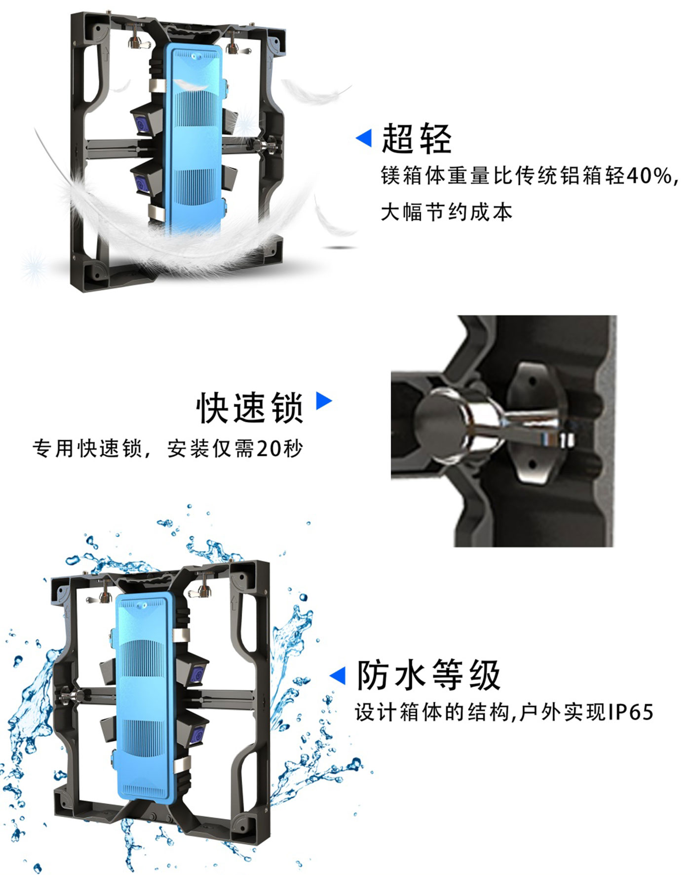 3、Convenient and fast maintenance front and rear dual maintenance magnetic suction module which can be easily removed from the front or back;